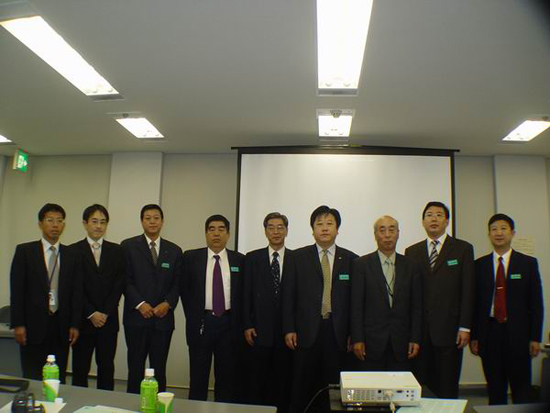 上圖為總經理朱九洲率團考察日本株式會社大林組課后合影。右四為總經理朱九洲,右三為設計部部長大井先生、左五為市場開發部部長圖井、左一為遲田先生、左二為山口科長。