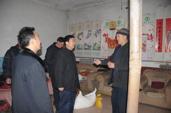 1月18日上午,集團公司監事會主席、黨委副書記、紀委書記滕忠斌,副總經理兼駐臨朐幫扶領導小組組長穆乃杰,在臨朐城關街辦有關領導及殷家河村兩委領導陪同下,走訪慰問幫扶村的革命家庭、長壽家庭、孤寡家庭及困難家庭等十個家庭戶代表,并送去面粉和食用油,表達集團公司對幫扶村村民的新春祝福和美好祝愿。集團公司總部有關部門、第九分公司有關人員和幫扶領導小組成員參加了走訪慰問活動。 ![]() 走訪孤寡老人 ![]() 走訪革命家屬家庭 ![]() 走訪96歲壽星戶