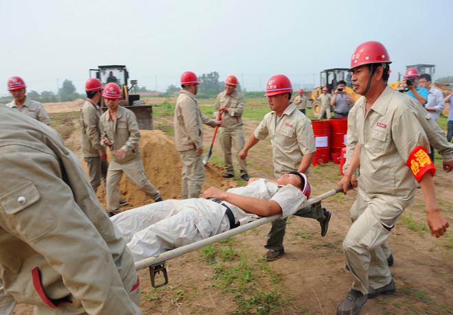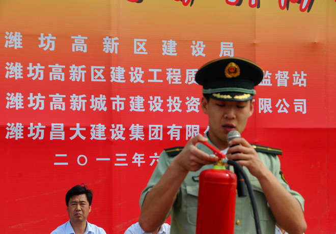 為切實推進施工現場消防安全管理,提高全員消防應變能力,以實際行動開展好“六月安全月”活動,2013年6月5日上午,集團公司在高新區中央商務區施工現場組織了大型消防演練活動。來自各基層單位分管生產的經理、工程管理人員,施工現場專職安全員,演練現場三個分公司的全體管理人員和勞務專業隊伍,高新區工程建設、總承包、監理單位以及勞務分包單位代表等近1000人參加了演練活動。