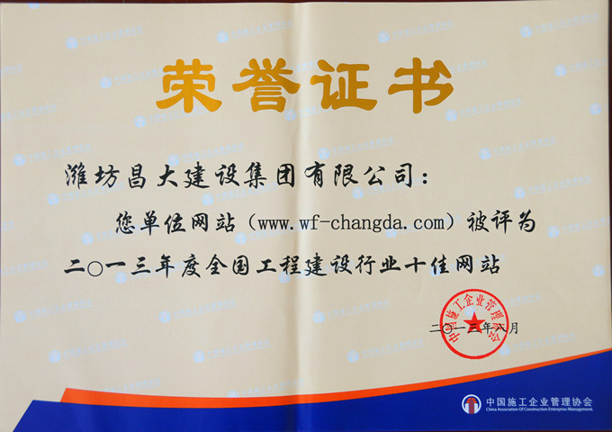 2013年8月15日至17日,中國施工企業管理協會召開年度通聯員工作會議,報告通聯年度工作,開展聯絡員通訊員交流活動,表彰優秀報刊、網站,表彰優秀聯絡員、通訊員。集團公司官方網站(www.wf-changda.com)被評為2013年度全國工程建設行業十佳網站?!恫蠼ㄔO報》被評為全國工程建設行業銀頁報紙獎。