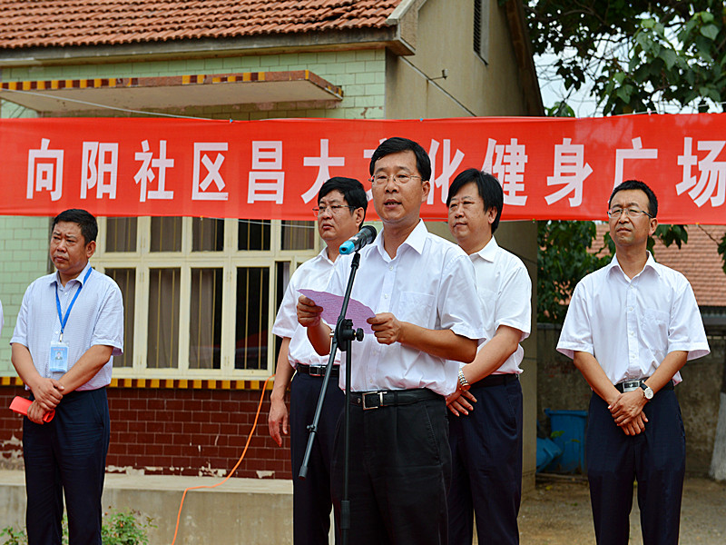 2014年7月18日上午,由集團捐助建設的濰坊高新區新鋼街辦向陽社區昌大文化健身廣場舉行了隆重、儉樸而熱烈的開工典禮。濰坊市人大常委、集團董事長徐鵬強應邀出席開工典禮并講話,集團總經理朱九洲、監事會主席滕忠斌、副總經理穆乃杰也應邀出席上述活動。典禮由新鋼街辦主持,出席開工典禮的還有高新區管委會有關部門負責人、新鋼街辦有關領導、向陽社區各有關方面代表共計300余人。