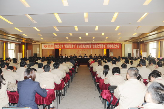 ——集團(tuán)公司召開“質(zhì)量管理年”活動(dòng)總結(jié)表彰暨“信息化管理年”活動(dòng)動(dòng)員大會(huì)     1月15日下午,集團(tuán)公司在市政府接待中心五樓會(huì)議室隆重召開“質(zhì)量管理年”活動(dòng)總結(jié)表彰暨“信息化管理年”活動(dòng)動(dòng)員大會(huì),總結(jié)2011年“質(zhì)量管理年”活動(dòng)成功經(jīng)驗(yàn),表彰活動(dòng)中的先進(jìn)集體和個(gè)人;動(dòng)員廣大員工全面參與集團(tuán)公司2012年“信息化管理年”活動(dòng),以豐富而有效的實(shí)踐活動(dòng),推進(jìn)企業(yè)管理現(xiàn)代化。集團(tuán)公司高管層領(lǐng)導(dǎo)、總經(jīng)理助理,各基層單位和有關(guān)子公司領(lǐng)導(dǎo)班子成員、科室長、項(xiàng)目經(jīng)理、信息化主管,集團(tuán)公司總部部室負(fù)責(zé)人、信息化管理員,在“質(zhì)量管理年”活動(dòng)中受表彰人員,共340人參加了會(huì)議。