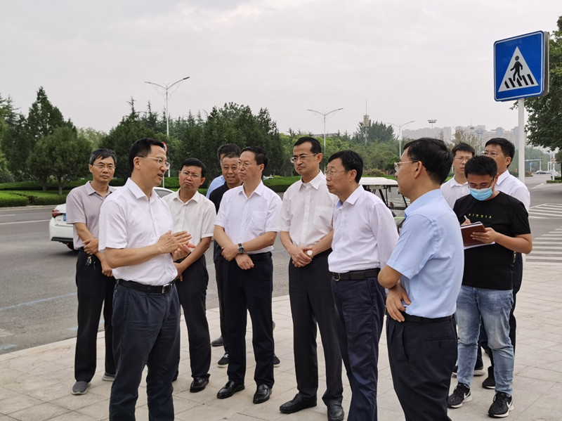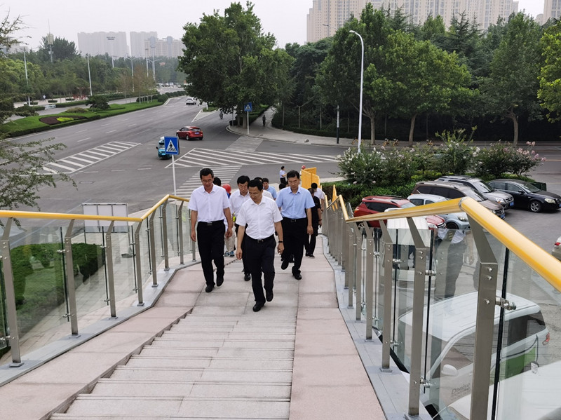2020年7月31日上午,濰坊市委書記、市人大常委會主任惠新安現場視察北海路民生街過街天橋工程。市住建局黨組書記、局長王教法,集團董事長徐鵬強陪同視察。
