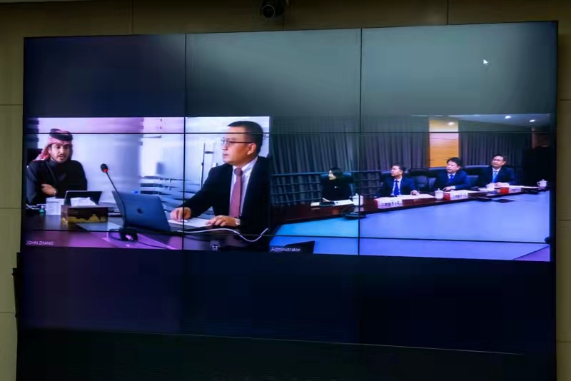 董事長徐鵬強(qiáng)、總裁朱九洲等集團(tuán)領(lǐng)導(dǎo)與卡塔爾扎伯王爺舉行視頻會議