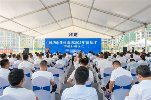 2022年9月1日上午,濰坊全市住建系統(tǒng)2022年“質(zhì)量月”活動在濰坊市東方名著項目現(xiàn)場舉行啟動儀式,市住建局黨組書記、局長鐘光文出席活動,就本次活動提出相關(guān)要求,并與嘉賓一同按下開啟按鍵,拉開了2022年濰坊市“質(zhì)量月”活動序幕。市住建局黨組成員、建筑業(yè)發(fā)展服務(wù)中心主任許增賢出席活動。集團(tuán)公司總裁朱九洲出席啟動儀式并代表施工企業(yè)作表態(tài)發(fā)言。集團(tuán)公司總工程師房海赴臨沂主會場參加活動并接受2021年度優(yōu)質(zhì)結(jié)構(gòu)獎頒獎。 在今天濰坊“質(zhì)量月”活動啟動儀式上,與會人員在現(xiàn)場通過網(wǎng)絡(luò)觀看了全省在臨沂主會場,主題為“推動質(zhì)量變革創(chuàng)新、促進(jìn)質(zhì)量強國建設(shè)、建設(shè)品質(zhì)工程、筑就美好生活”的質(zhì)量月活動啟動儀式。在主會場儀式上,有主會場當(dāng)?shù)仡I(lǐng)導(dǎo)和省廳有關(guān)領(lǐng)導(dǎo)的致辭講話、有部署全省住建系統(tǒng)質(zhì)量月活動安排、觀看《匠心筑夢質(zhì)享未來》工程質(zhì)量提升成果專題片、通報山東省近十年爭創(chuàng)魯班獎和國家優(yōu)質(zhì)工程獎情況、為2021年優(yōu)質(zhì)結(jié)構(gòu)獎代表頒發(fā)證書、為“天元大工匠”代表頒發(fā)證書,建設(shè)、施工、勘察、設(shè)計、監(jiān)理、檢測等行業(yè)代表宣讀關(guān)于落實工程質(zhì)量的倡議書、各地市質(zhì)量提升成果展示等等。在濰坊啟動儀式上,項目建設(shè)單位、總承包施工企業(yè)和監(jiān)理企業(yè)代表作了表態(tài)發(fā)言。 濰坊各縣市、市屬各開發(fā)區(qū)住建局局長、建筑業(yè)中心主任或質(zhì)量安全服務(wù)站站長;中心城區(qū)(奎文、濰城、坊子、寒亭、高新)監(jiān)管機(jī)構(gòu)質(zhì)量監(jiān)督人員代表;高新區(qū)工程項目建設(shè)單位、施工單位、監(jiān)理單位代表 參加會議。 據(jù)悉,今年9月是全國第45個質(zhì)量月。 本次活動還是加強了疫情管控,所有參會人員在近14天均不得途經(jīng)中高風(fēng)險地區(qū)和必須提供48小時核酸陰性證明。