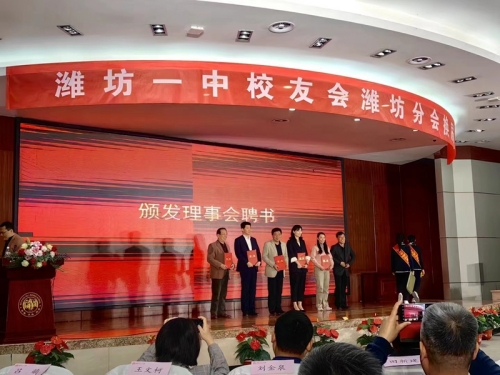 2024年4月6日,濰坊一中在圖書館學術報告廳召開了校友會濰坊分會換屆大會,昌大集團董事長徐鵬強當選濰坊一中濰坊校友分會會長,這也是該組織的第二任會長。