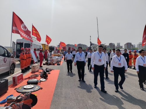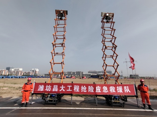 2024年4月17日至18日,山東省地震綜合應急演練在東營市舉行。副省長周立偉,省政府副秘書長張成偉,省應急廳黨委書記、廳長江山出席活動。濰坊昌大工程搶險應急救援隊作為山東省省級應急救援隊受邀參與現場綜合演練,救援隊20名隊員參與演練,出動大型汽車吊、智能照明設備、液壓破拆裝備等多臺裝備進行救援展示并順利完成48小時戶外自我保障,圓滿完成演練任務。通過深度參與演練,與各專業應急隊伍的交流學習,濰坊昌大工程搶險應急救援隊持續完善應急救援保障能力,進一步提升應急救援專業水平。演練期間,濰坊市應急局黨委書記、局長王法順觀摩救援隊現場展區并慰問參訓隊員。