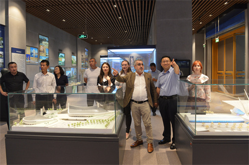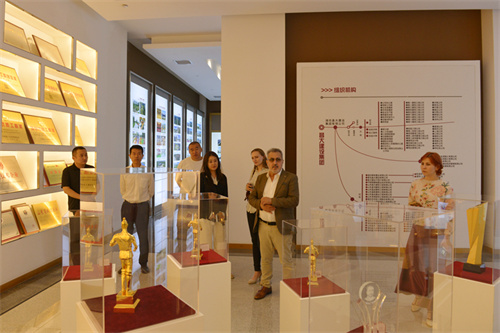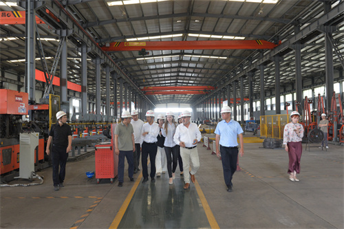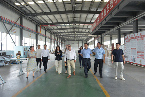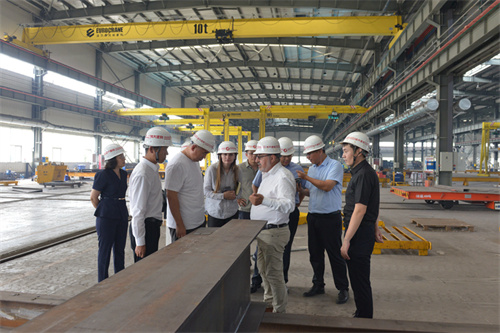 來(lái)訪(fǎng)期間,菲祖利先生一行四人先后參觀了昌大建科鋼筋加工、鋼結(jié)構(gòu)以及預(yù)制構(gòu)件車(chē)間,第三裝飾幕墻公司門(mén)窗加工車(chē)間,參觀了集團(tuán)公司企業(yè)展廳、建筑史館。