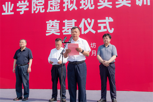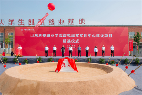 2025年7月17日上午,山東科技職業(yè)學(xué)院虛擬現(xiàn)實(shí)實(shí)訓(xùn)中心項(xiàng)目奠基儀式在項(xiàng)目現(xiàn)場(chǎng)隆重舉行。學(xué)院黨委書(shū)記鄭德前,集團(tuán)公司總裁朱九洲,山東省工程咨詢?cè)狐h組成員、副院長(zhǎng)何健,山東建筑大學(xué)設(shè)計(jì)集團(tuán)有限公司董事長(zhǎng)、總經(jīng)理李端杰,招商銀行濰坊分行黨委書(shū)記、行長(zhǎng)潘兆強(qiáng),學(xué)院黨委委員、紀(jì)委書(shū)記秦建坤,學(xué)院黨委委員、副校長(zhǎng)徐曉雁、董傳民,學(xué)院副校長(zhǎng)張振東出席奠基儀式。