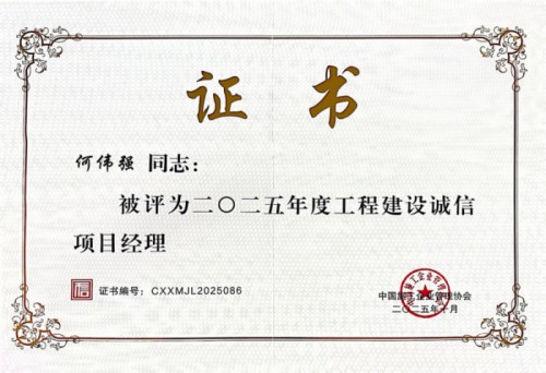 昌大建設集團憑借長期穩定的誠信經營與優良的履約記錄,連續多年通過“AAA”級信用企業評審,并再次獲評“工程建設誠信典型企業”。集團董事長徐鵬強被授予“工程建設誠信企業家”榮譽稱號。集團旗下裝飾幕墻公司何偉強榮獲“工程建設誠信項目經理”稱號。