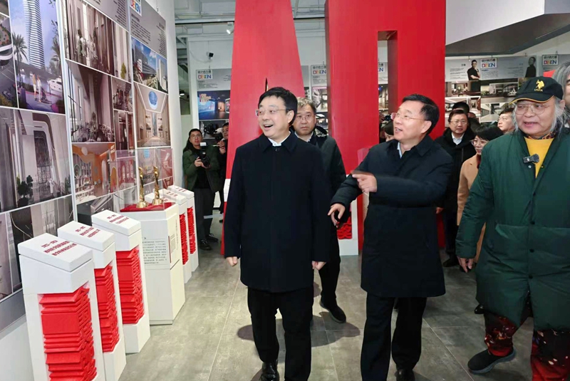 2025年12月27日上午,由昌大建設(shè)集團冠名支持的“昌大建設(shè)杯”沂山濰水文學(xué)大賽頒獎典禮和濰坊市首屆設(shè)計藝術(shù)展暨文藝家之家揭牌儀式在濰坊市美術(shù)館隆重舉行。中國作協(xié)辦公廳主任劉秀娟、山東省文聯(lián)黨組書記、副主席何思清、山東省作協(xié)黨組書記、副主席趙藝丁、山東藝術(shù)學(xué)院黨委書記徐梅、山東工藝美術(shù)學(xué)院黨委書記王曉娟、濰坊市委書記劉運、市委常委、宣傳部部長楊建華、市人大常委會副主任馮紀(jì)偉、副市長狄波、市政協(xié)黨組副書記、副主席王富等領(lǐng)導(dǎo)出席活動。集團董事長徐鵬強出席典禮并為文學(xué)大賽提名獎代表頒獎。市文聯(lián)、市文旅局主要負責(zé)同志,“昌大建設(shè)杯”沂山濰水文學(xué)大賽獲獎?wù)叽恚骺h市區(qū)文聯(lián)、作協(xié)主要負責(zé)同志以及文藝家協(xié)會會員代表等參加活動。集團副總裁吳杰及有關(guān)單位負責(zé)人參加了活動。 儀式結(jié)束后,與會嘉賓共同參觀了新揭牌的“文藝家之家”及濰坊市首屆設(shè)計藝術(shù)展。集團“八大品牌”在展會中集中亮相,展示了企業(yè)的綜合實力與創(chuàng)新成果,引來眾多嘉賓駐足交流。