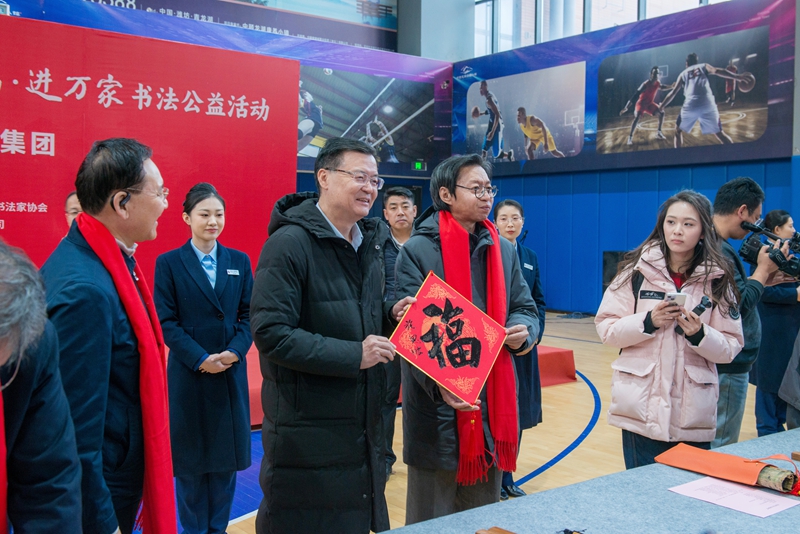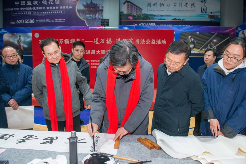 2026年1月23日下午,2026年“萬福迎春”——送萬?!みM萬家書法公益活動在集團中頤龍湖康養小鎮成功舉辦。中華全國總工會原黨組成員、經費審查委員會主任、中國職工文化體育協會會長李守鎮,中國職工文化體育協會副會長、中國書協會員葛海鷹,濰坊市人大常委會黨組副書記、副主任、市總工會主席田民利,濰坊市總工會黨組書記、常務副主席賈平,中國書協理事、中國職工書協副主席、中國鐵路書協主席施恩波,中國文聯機關黨委原常委、中國書法家協會黨總支原書記、四五六屆理事吳震啟,中國書法家協會理事、中國美術家協會理事、中央文史館書畫院院部委員梁永琳,山東省書協副主席、山東青年政治學院教授亓漢友,山東省書協副主席、淄博職業技術大學教授鄒方臣,中國書協理事、山東省書協副主席、濰坊市文聯書畫院院長逄春偉,山東省書協主席團委員、濟南市書協副主席胡宗江,山東港口書畫協會會長、日照市書法家協會主席丁履磊,一級美術師、山東省書協顧問、濰坊市書協主席紀君,中國書協會員、中國美協會員、北大訪問學者、山東美協理事、濰坊美協副主席季樂勝,集團公司黨委書記、董事長徐鵬強,黨委副書記、總裁朱九洲等領導和書法家出席活動。集團公司副總裁吳杰、孟憲禮參加了活動,活動由集團公司副總裁惠守江主持,各主辦、承辦單位的有關負責人和員工代表、小鎮業主代表共150余人參加活動。